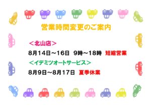 短縮営業と夏季休業のおしらせをさせていただきます